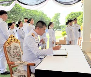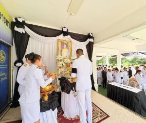 พ.ต.ท.สุทธิรักษ์ เคร่งจริง สวป.สภ.ดอนพุด, ร.ต.อ.เจนวิทย์ ชัยจำ รอง.สวป.(ชส.)ฯ พร้อมข้าราชการตำรวจ สภ.ดอนพุด ร่วมพิธีถวายสักการะสรงน้ำพระบรมศพเบื้องหน้าพระฉายาลักษณ์ สมเด็จพระนางเจ้าสิริกิติ์ พระบรมราชินีนาถ พระบรมราชชนนีพันปีหลวง ณ ที่ว่าการอำเภอดอนพุด อ.ดอนพุด จ.สระบุรี
