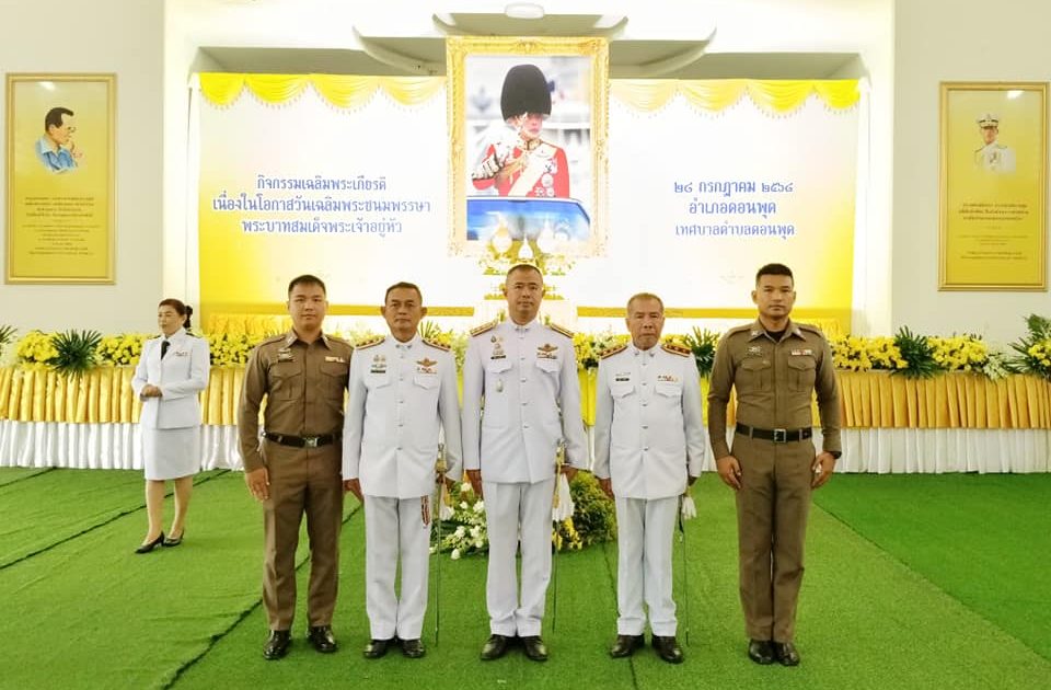 – เวลา 07.30 น. พ.ต.อ.ปวริศ แพงปัสสา ผกก.สภ.ดอนพุด, ร.ต.อ.สำราญ มั่นเกตวิทย์ รอง สวป.(ป.)ฯ, ร.ต.อ.บุญมิ่ง กาบบัว รอง สวป.(จร.)ฯ พร้อมข้าราชการตำรวจสภ.ดอนพุด ร่วมพิธีทำบุญตักบาตร ถวายพระราชกุศล และถวายสัตย์ปฏิญาณเพื่อเป็นข้าราชการที่ดีและพลังของแผ่นดินเนื่องในโอกาสวันเฉลิมพระชนมพรรษา พระบาทสมเด็จพระเจ้าอยู่หัว ณ หอประชุมที่ว่าการอำเภอดอนพุด อ.ดอนพุด จ.สระบุรี โดยมี นายธนเดช เทวิน นายอำเภอดอนพุด เป็นประธานในพิธี