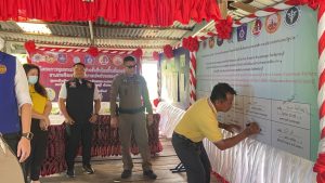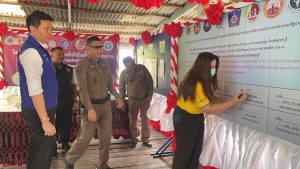 พร้อมด้วยชุดชุมชนยั่งยืน สภ.ดอนพุด และภาคีเครือข่ายที่เกี่ยวข้อง,ประธาน กต.ตร.สภ.ดอนพุด, สาธารณสุขอำเภอดอนพุด ,นายกเทศบาลตำบลดอนพุด ,ผอ.รพ.ดอนพุดผอ.รพ.สต ,กำนัน,ผู้ใหญ่บ้าน,อสม.,ตัวแทน ป.ป.ส.ภาค 1 , ผู้นำชุมชน คณะกรรมการชุมชนท้ายบ้านหนองมนและประธานชุมชน คณะกรรมการชุมชนได้ร่วมพิธีเปิดโครงการชุมชน บำบัดอย่างยั่งยืนในพื้นที่แพร่ระบาดยาเสพติด ตามนโยบายเร่งด่วนของรัฐบาล พร้อมทั้งร่วมลงนาม (MOU)