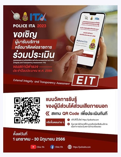– ให้สถานีตำรวจศึกษาการเข้าใช้ระบบ POLICEITA พร้อมจัดทำข้อมูลสาธารณะตามแบบฟอร์ม ที่กำหนดลงในระบบดังกล่าว - แบบวัดการรับรู้ของผู้มีส่วนได้ส่วนเสียภายใน(Internal Integrity and Transparency Assessment: IIT)